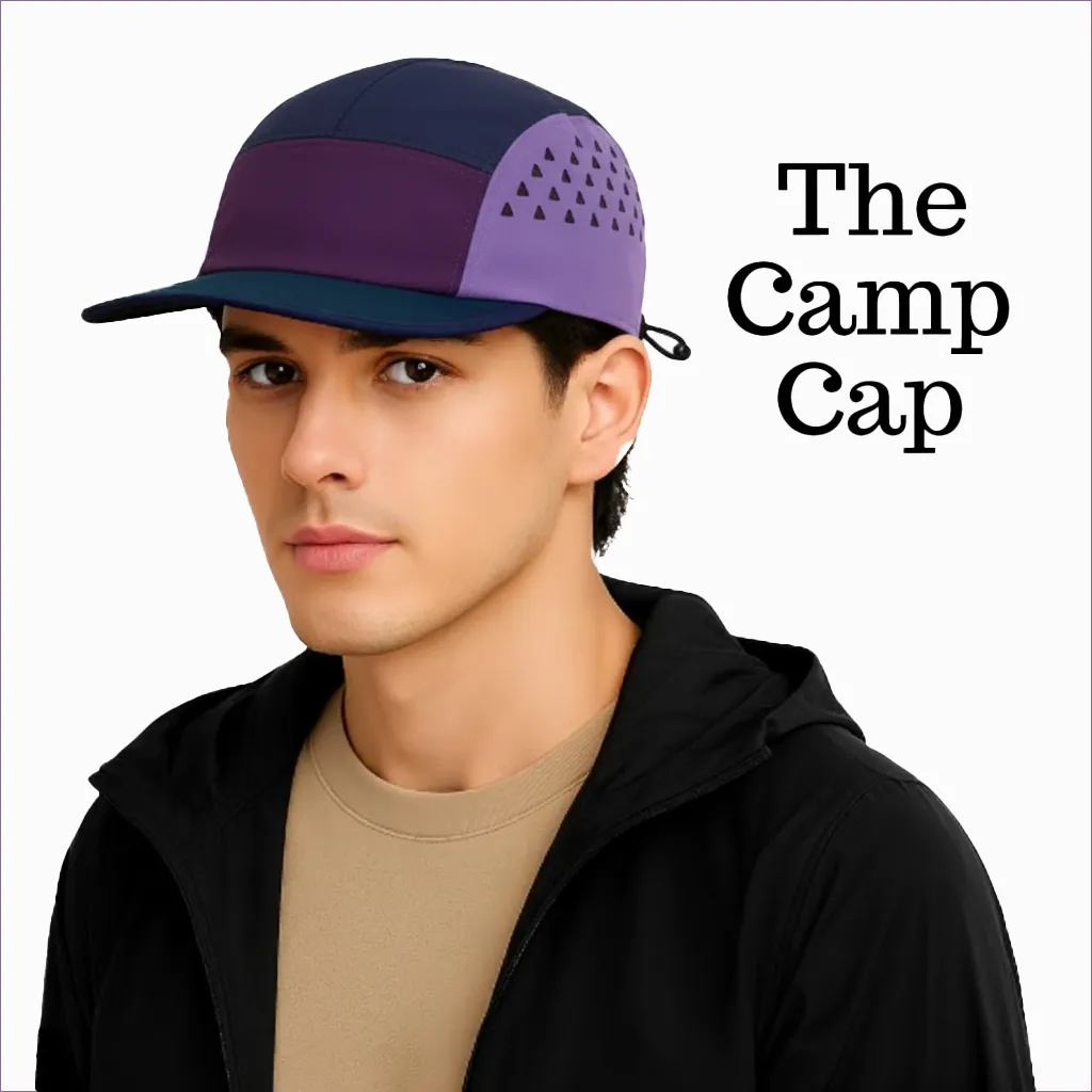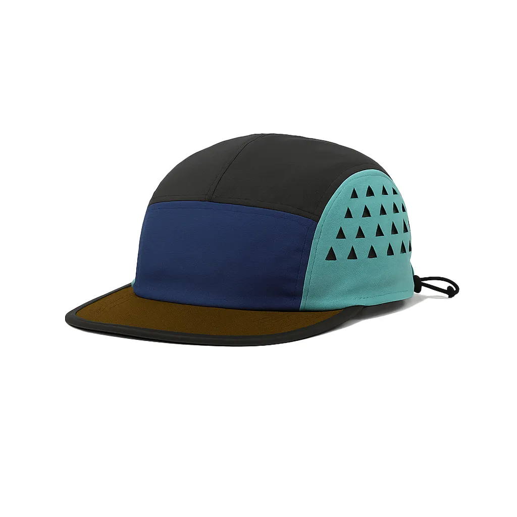 Crafted for those who move between city streets and outdoor trails, this color-blocked camp cap blends lightweight structure with a modern, athletic edge; the multi-panel design offers a comfortable, low-profile fit with ventilated side cutouts that enhance breathability, while the flexible brim and adjustable back pull cord bring a refined balance of style and performance.