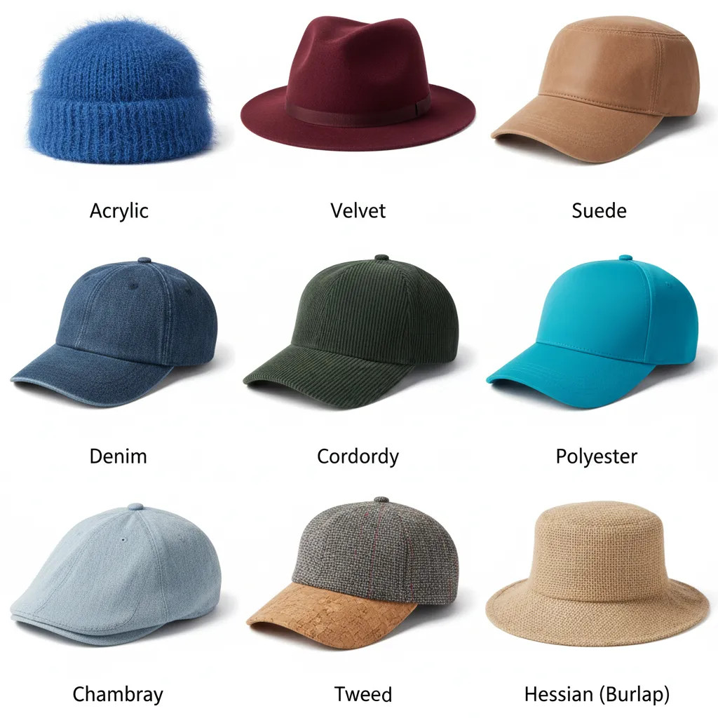 Each hat starts with its material. Choose from wool, cotton, or boldly try leather and corduroy—each fabric brings unique life to the design.